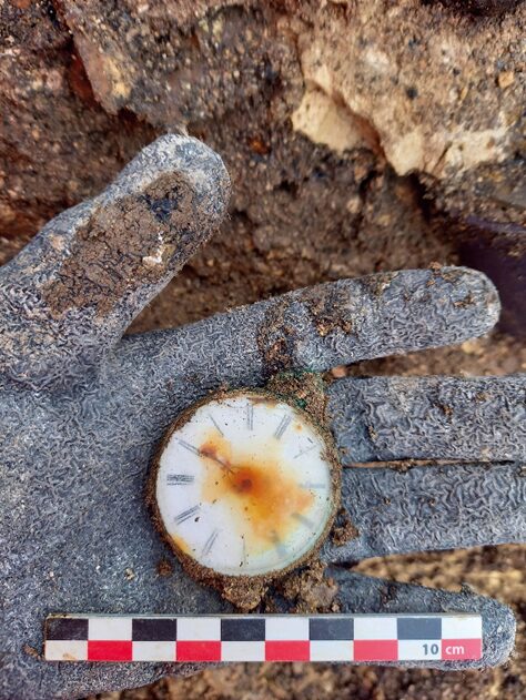 Montre découverte dans les vestiges d’un sinistre de 1870-1871, Saint-Cloud, Fouilles du musée du Grand Siècle © JD Desforges