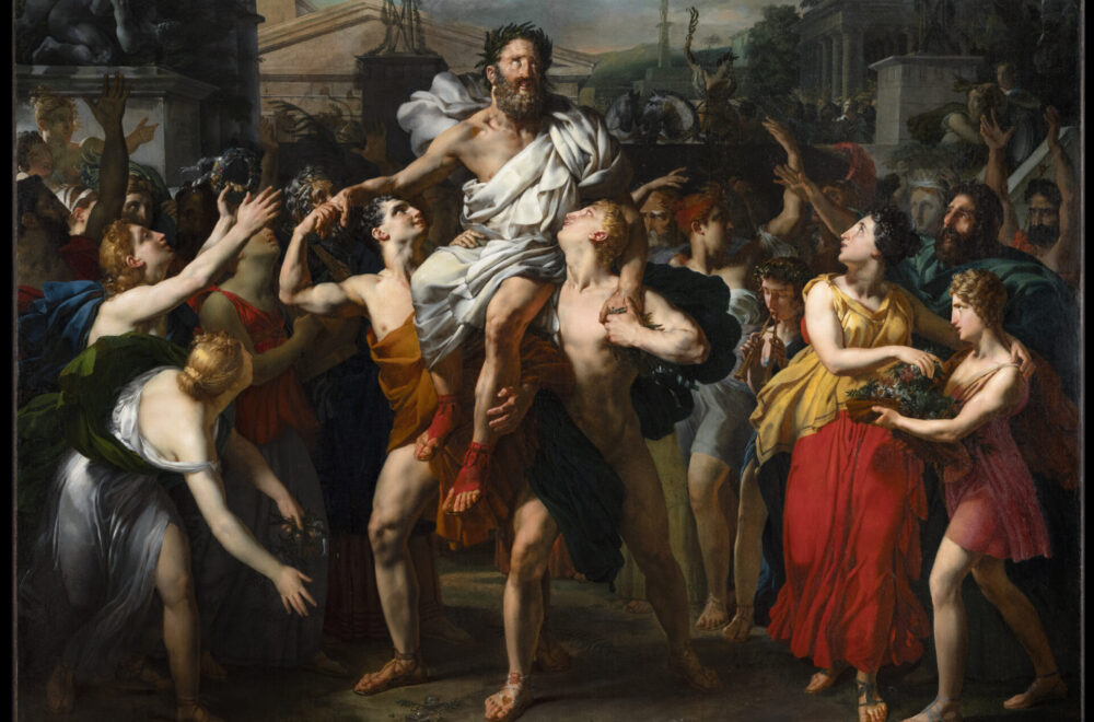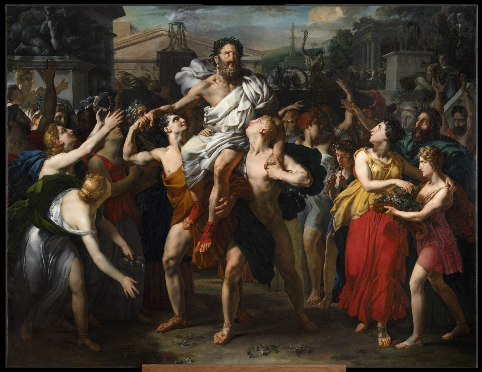 École française, Diagoras porté en triomphe par ses fils, 1814, huile sur toile, H. 112 x 146,3 cm, Département des Hauts-de-Seine, musée du Grand Siècle, donation Pierre Rosenberg, inv. 2020.1.225 © CD92 / Julien Garraud