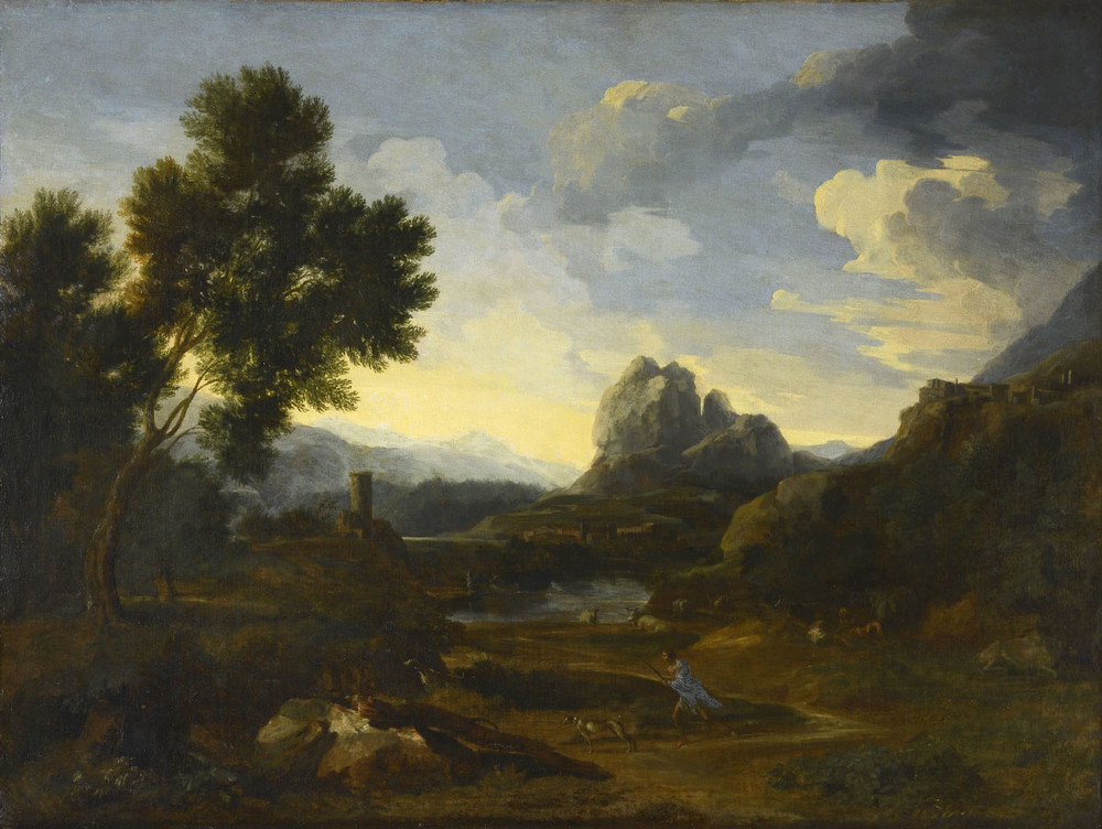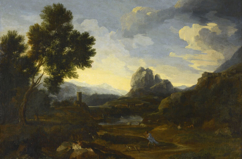 Gaspard Dughet, Paysage avec chasseurs, vers 1650, huile sur toile, H. 75,3 x L.100,3 cm, Département des Hauts-de-Seine, musée du Grand Siècle, donation Pierre Rosenberg, inv. 2020.1.71 © CD92 / Suzanne Nagy