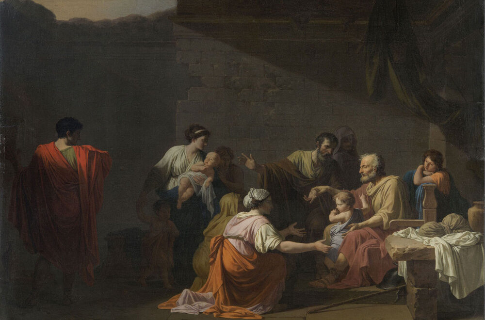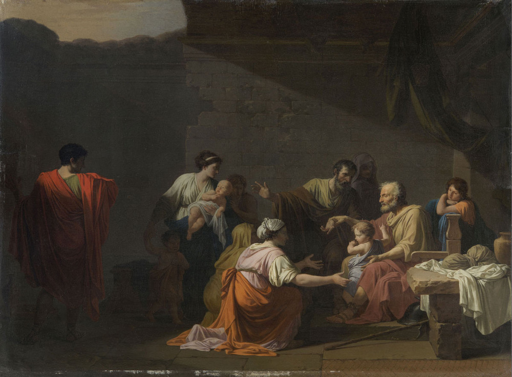 Pierre Peyron, Bélisaire recevant l’hospitalité d’un paysan qui avait servi sous ses ordres, 1796, huile sur toile, H. 47,5 x L. 63 cm, Département des Hauts-de-Seine, musée du Grand Siècle, donation Pierre Rosenberg, inv. 2020.1.340 © CD92 / Suzanne Nagy