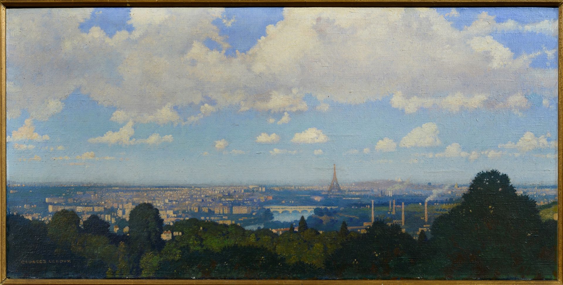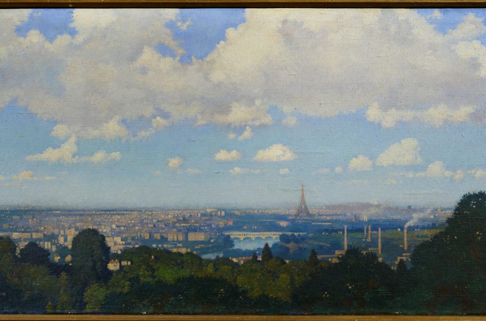 Georges Leroux, Vue de Paris depuis Meudon, XXe siècle, huile sur toile, H. 40 x L. 81 cm, département des Hauts-de-Seine, donation Pierre Rosenberg, musée du Grand Siècle, inv. 2020.1.629 © Suzanne Nagy