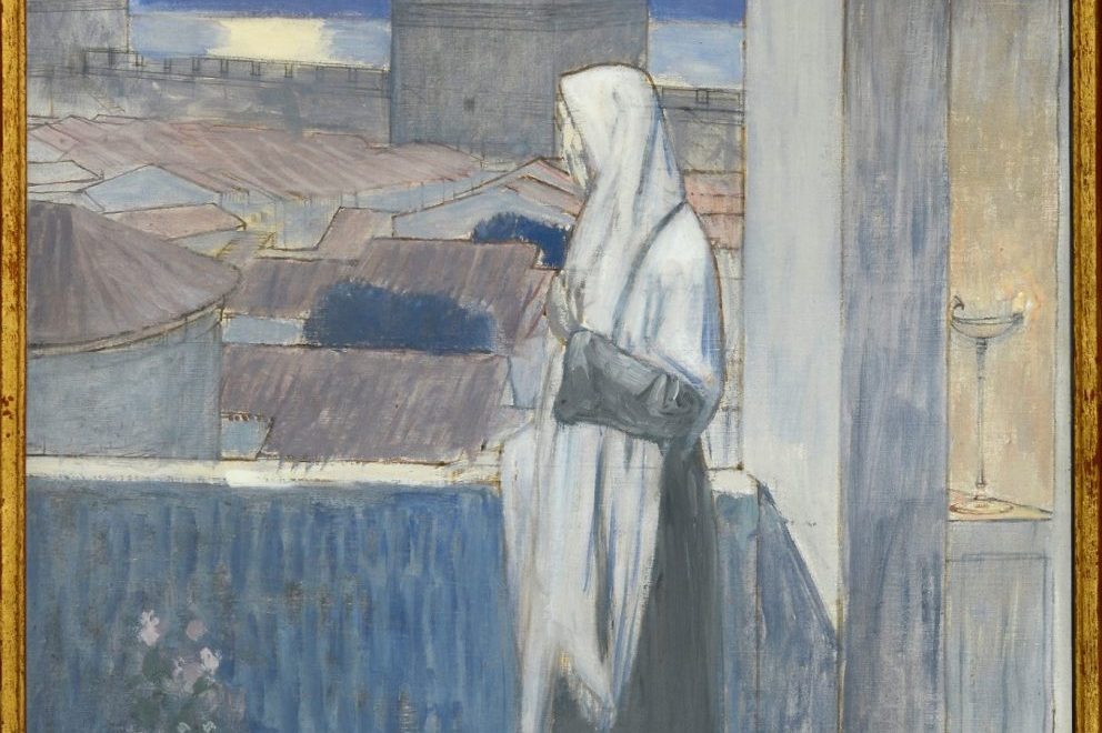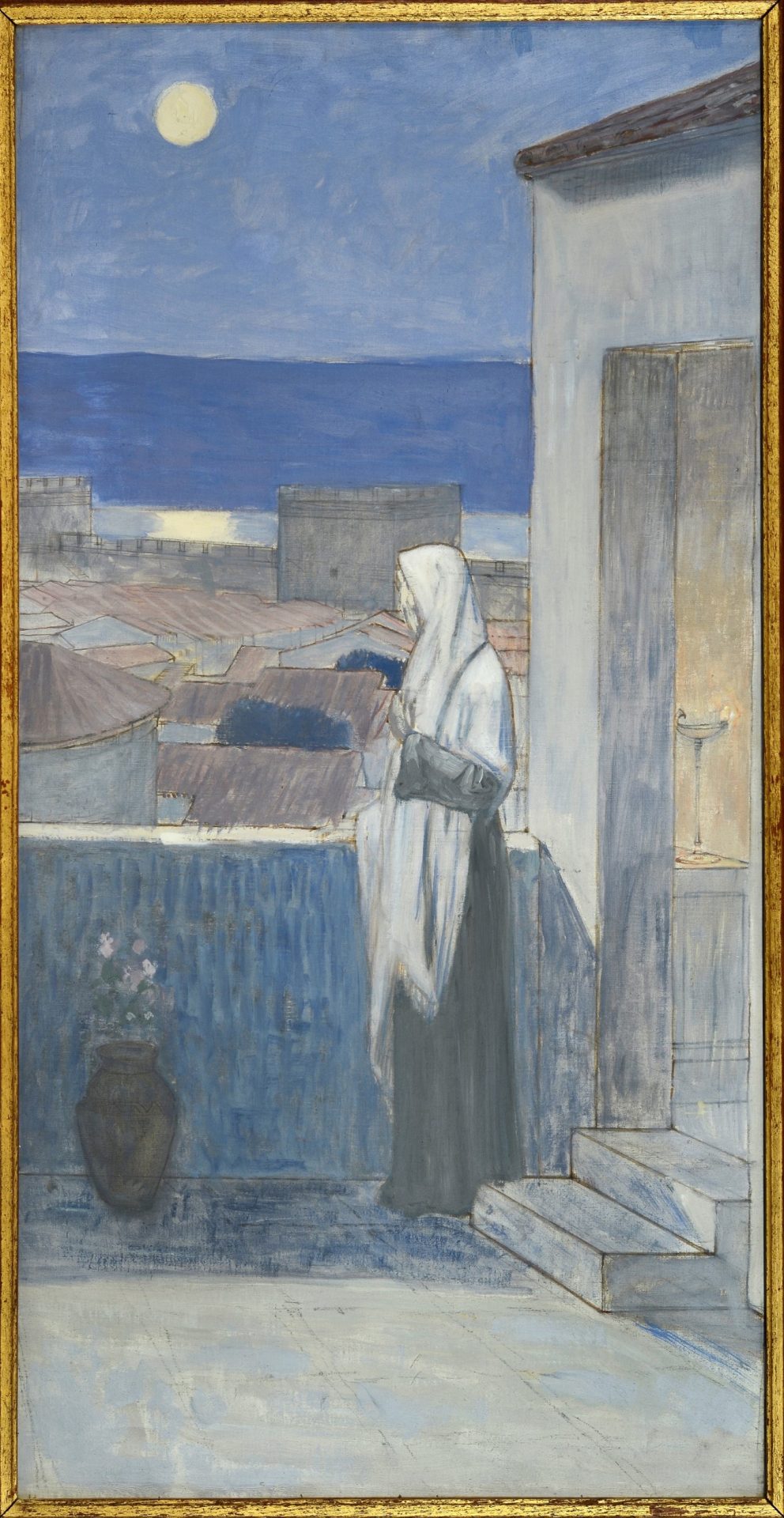 Pierre Puvis de Chavanne, Esquisse pour sainte Geneviève veillant sur Paris, fresque du Panthéon, XIXe siècle, huile sur toile, H. 92,5 x L. 47 cm, département des Hauts-de-Seine, donation Pierre Rosenberg, musée du Grand Siècle, inv. 2020.1.526 , © Suzanne Nagy