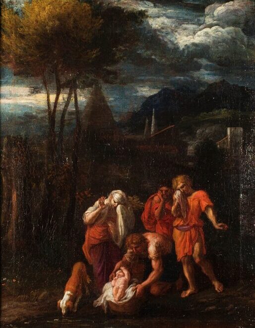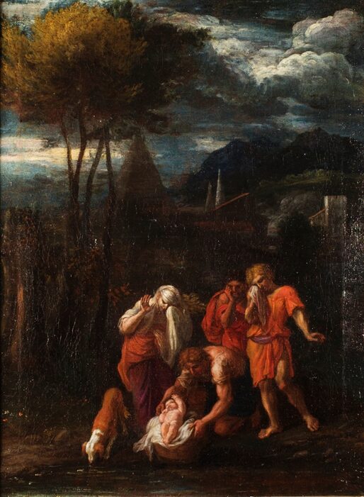 Michel II Corneille, Moïse sauvé des eaux, vers 1660, huile sur toile, H. 46,5 x L. 35 cm, Département des Hauts-de-Seine, musée du Grand Siècle, don de M. et Mme Jérémie Delecourt, inv. 2021.1.1 © CD92 / Willy Labre