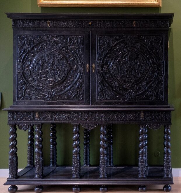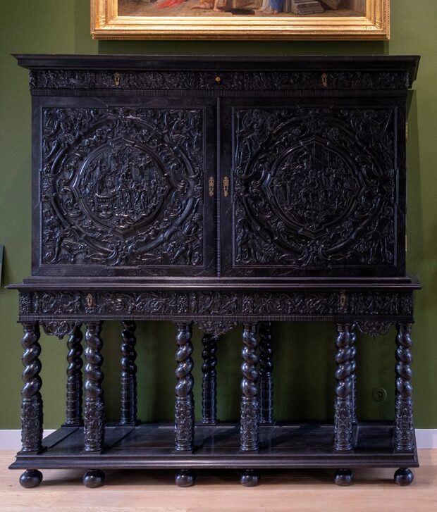 Atelier parisien, Grand Cabinet, vers 1635 (piétement postérieur), ébène et bois noirci, marqueterie de bois de rapport, ivoire et corne teintée, H. 215 x L. 204 x P. 59 cm, Département des Hauts-de-Seine, musée du Grand Siècle, don de Monsieur Jean-Rémy Macchia inv. 2023.16.1 © DR