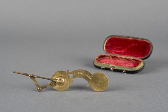 Nicolas Bion, Microscope d’entomologiste, fin du XVIIe siècle, laiton, H. 9 cm, Département des Hauts-de-Seine, musée du Grand Siècle, inv. 2023.21.1 © CD92 / Willy Labre