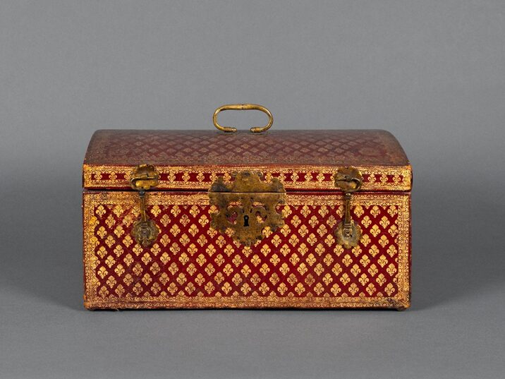 Atelier parisien, Cassette aux armes du duc de Berry, fin XVIIe – début XVIIIe siècle, bois gainé de maroquin rouge, doré au petit fer, cuivre, H. 22 x L. 44 x P. 18 cm, Département des Hauts-de-Seine, musée du Grand Siècle, don de Madame Béatrice Rosenberg, inv. 2023.23.1 © CD92 / Julien Garraud