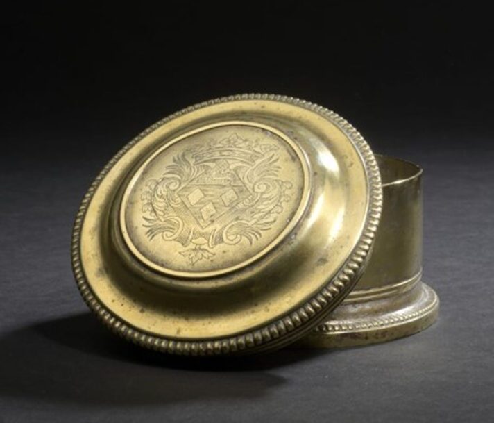 Anonyme, Boîte de toilette, métal plaqué d’argent, H. 7 x D. 12,3 cm, Département des Hauts-de-Seine, musée du Grand Siècle, don de la Société des amis du musée du Grand Siècle, inv. 2023.13.1 © / Daguerre