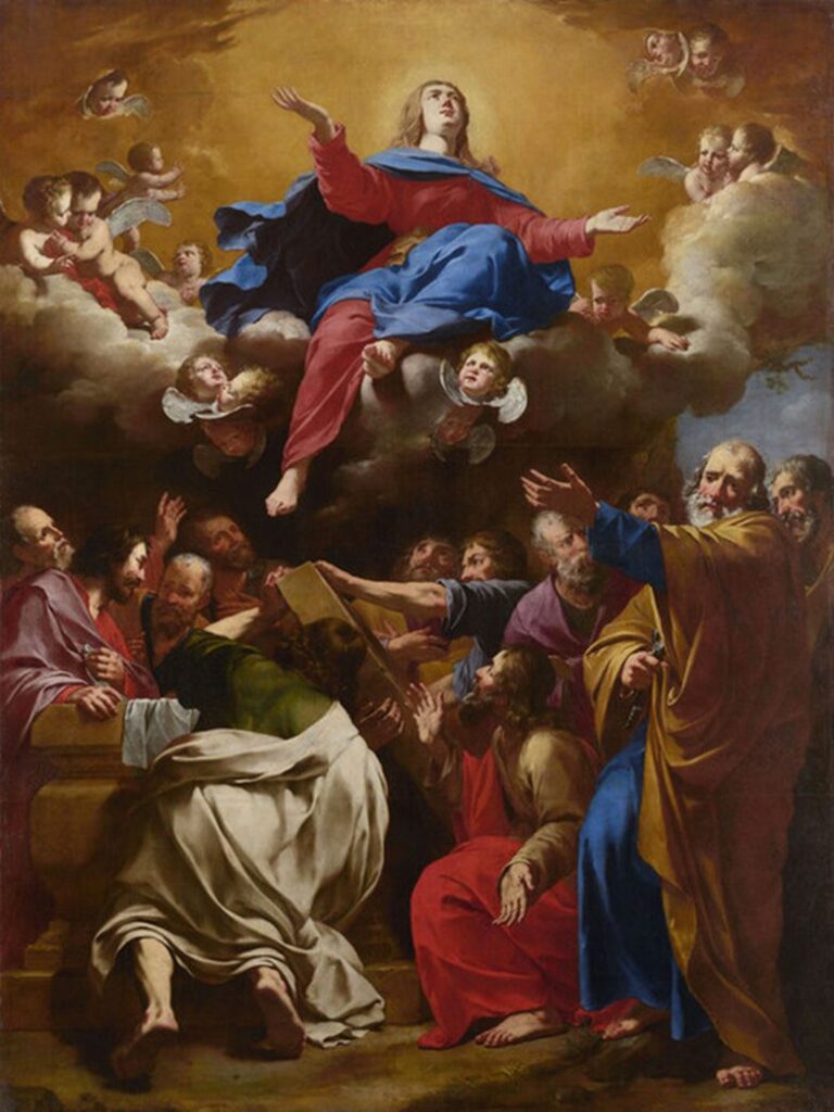 Fig 1 : Jean Daret, Assomption, 1647, huile sur toile, H. 320 x L. 266 cm, Collégiale actuellement église de la Nativité de Marie, Pignans, Var © CICRP, Émilie Hubert Joly