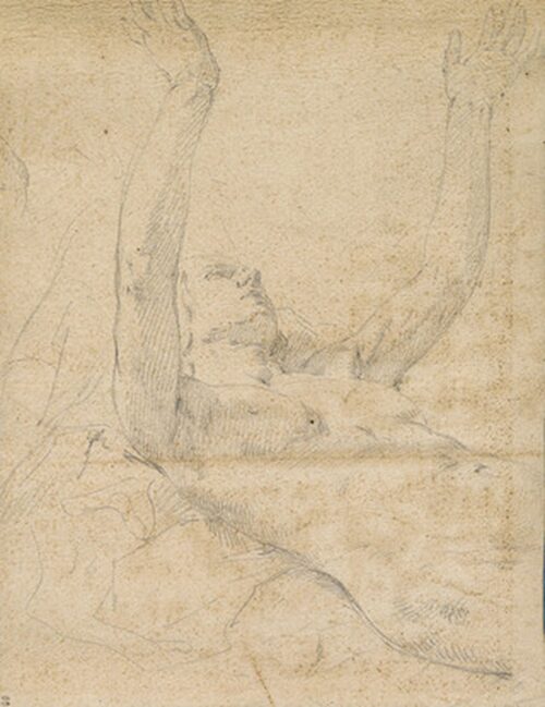 Fig. 2 : Jean Daret, Étude pour une femme nue, le buste renversé en arrière, vers 1640-1650, pierre noire sur papier, H. 21,6 x L. 15,8 cm, Département des Hauts-de-Seine, donation Pierre Rosenberg, musée du Grand Siècle, 7957 © CD92 / MGS