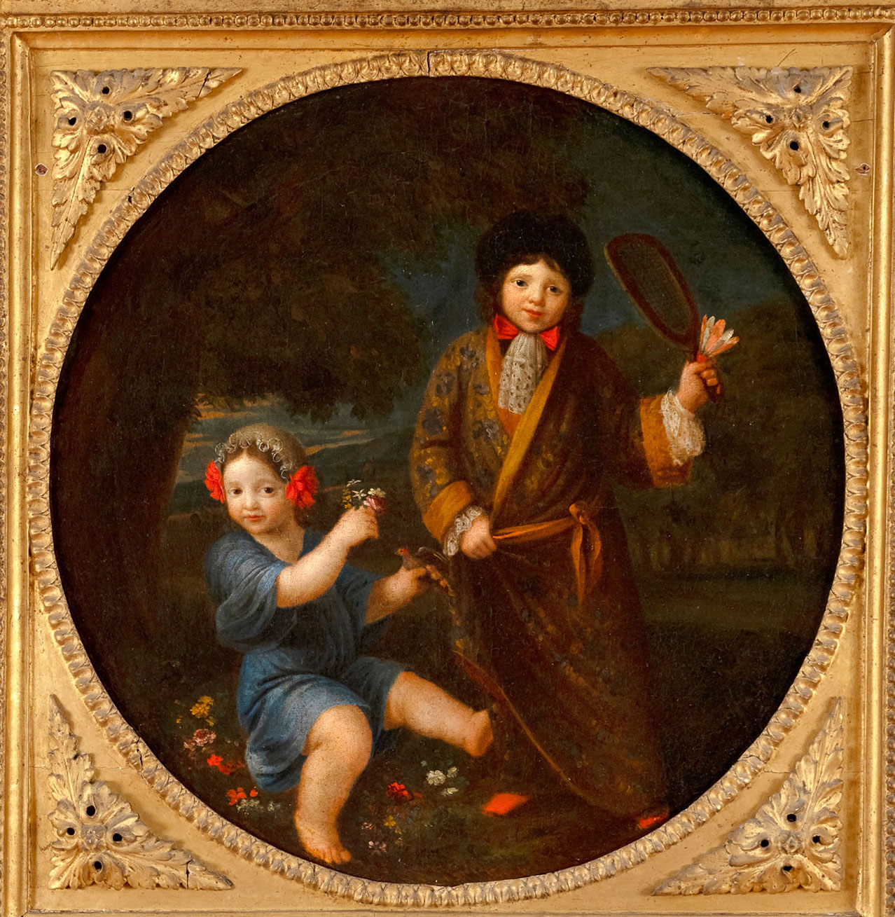 Ce tondo (tableau de format circulaire) d’un auteur anonyme de l’école française, acquis en 2023, donne un aperçu de la vie quotidienne des enfants de la haute société au XVIIᵉ siècle.