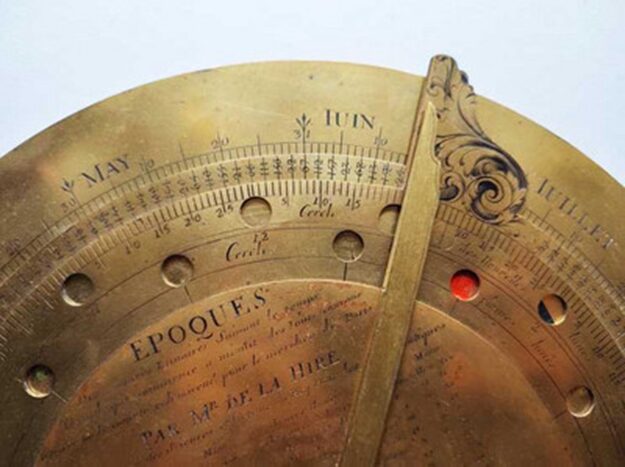 Parmi les astronomes attachés à l’Observatoire de Paris se trouve Philippe de La Hire, à l’origine de l’objet présenté. Fils du célèbre peintre Laurent de La Hyre (1606-1656), c’est donc naturellement qu’il s’intéresse d’abord à la peinture et au dessin. Mais lors de son voyage initiatique à Rome, il découvre la géométrie et les mathématiques et délaisse alors progressivement la peinture. Il devient membre de l’Académie royale des Sciences en 1678, institution dont il deviendra directeur en 1718.