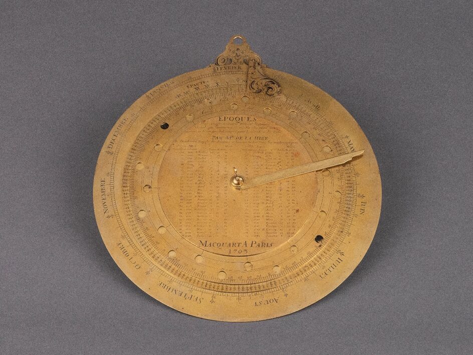 Fig. 2 : Henri Macquart, Lunarium de Philippe de La Hire, 1703, laiton doré, martelé et gravé, H. 35,2 cm, Département des Hauts-de-Seine, musée du Grand Siècle, inv. 2023.1.1 © CD92 / Julien Garraud