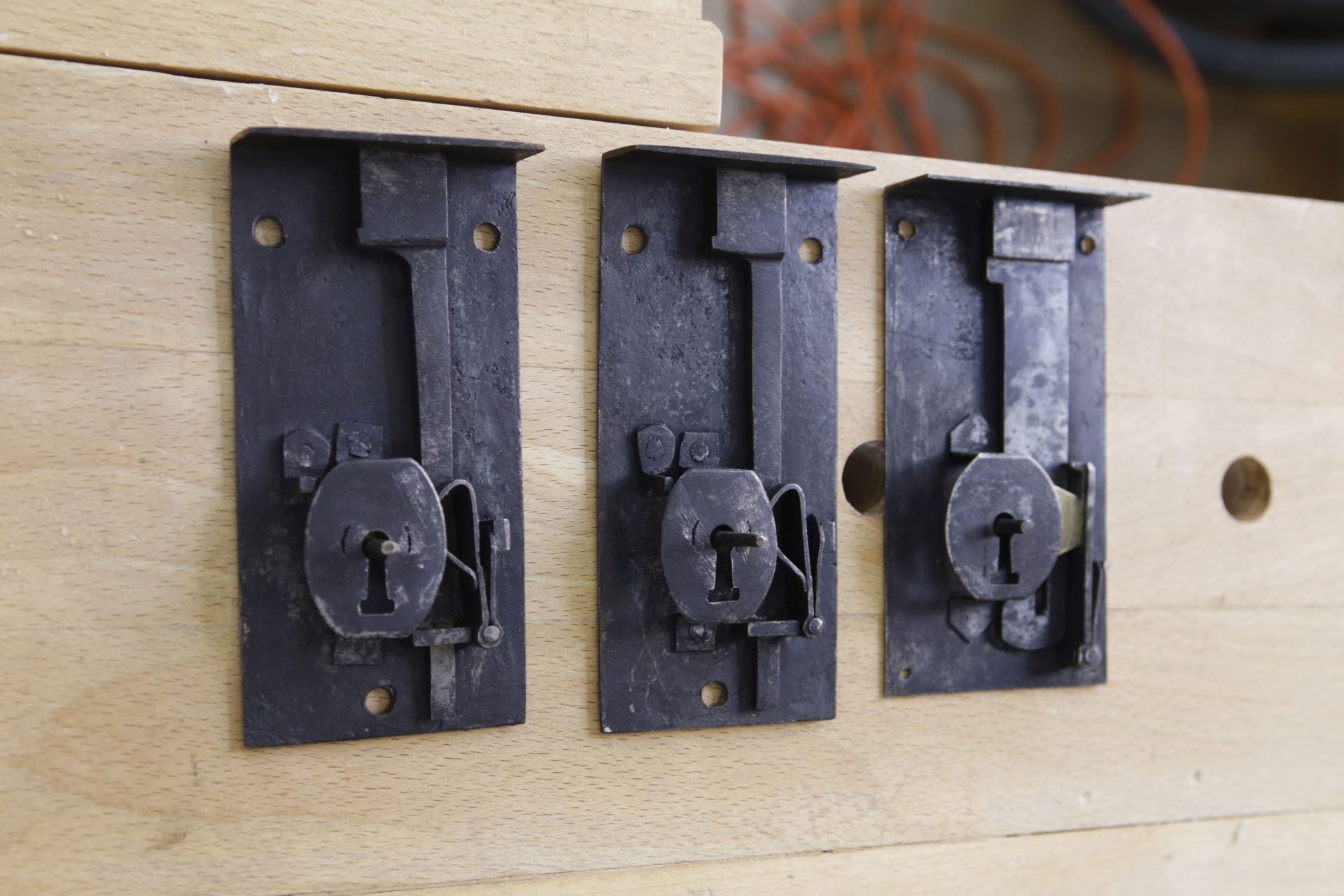 Les serrures ont été traitées afin de stabiliser leur corrosion, tandis que les bronzes ont été nettoyés avant d’être remontés sur le bureau avec des vis de même apparence.