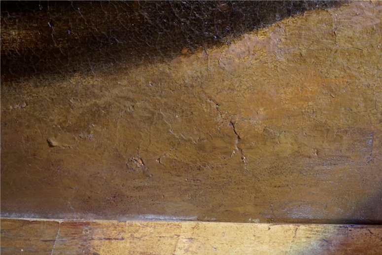 Détail de la couche picturale. Lubin Baugin (1610-1663), Martyre de saint Laurent, vers 1650, H. 214 cm x L. 141,5 cm, Département des Hauts-de-Seine, musée du Grand Siècle, donation Pierre Rosenberg, inv. 2020.1.14 © CD92 / Willy Labre