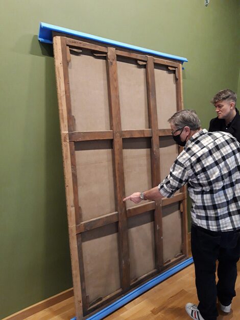 Coque de décollement du rentoilage. Lubin Baugin (1610-1663), Martyre de saint Laurent, vers 1650, H. 214 cm x L. 141,5 cm, Département des Hauts-de-Seine, musée du Grand Siècle, donation Pierre Rosenberg, inv. 2020.1.14 © Emmanuel Joyerot