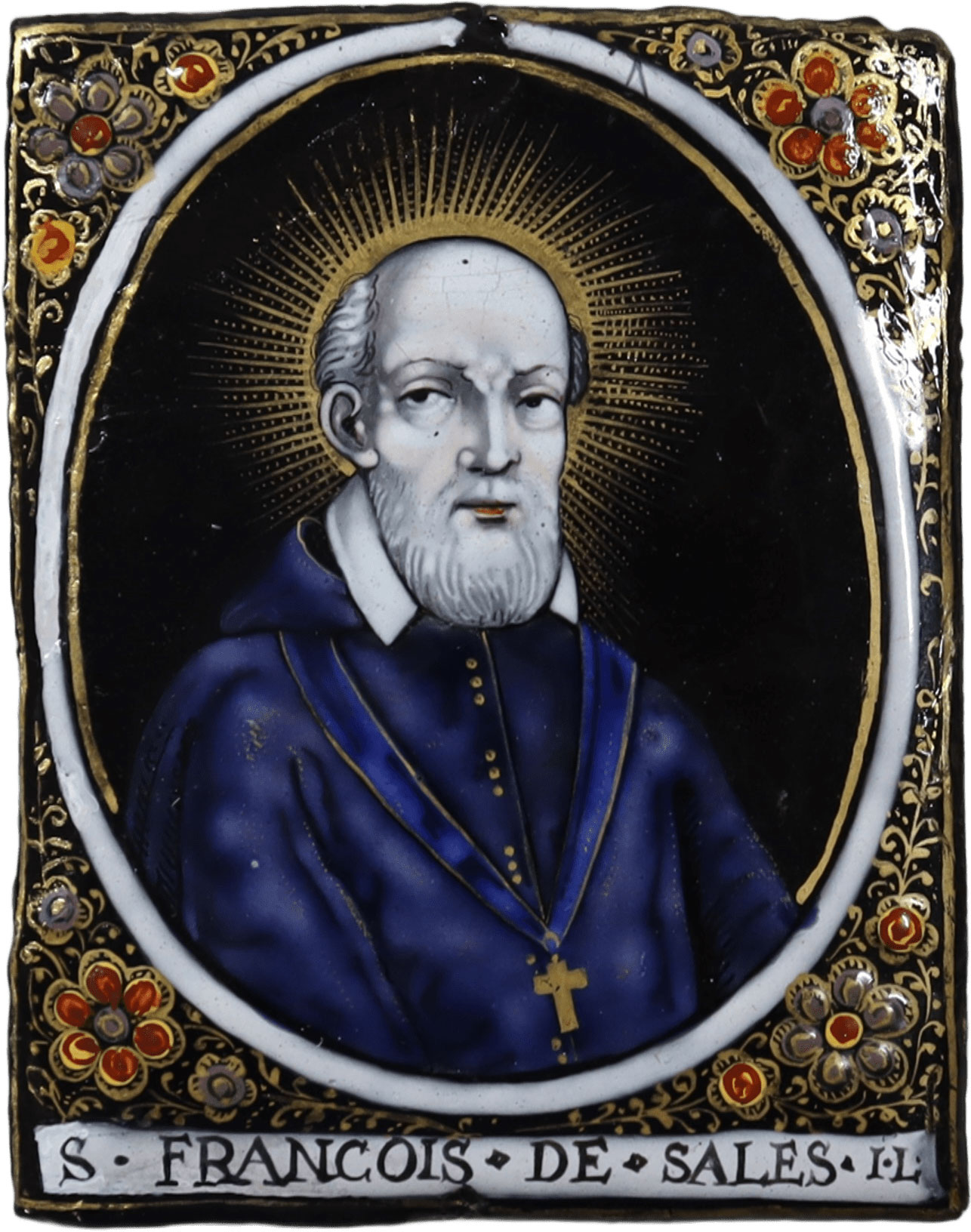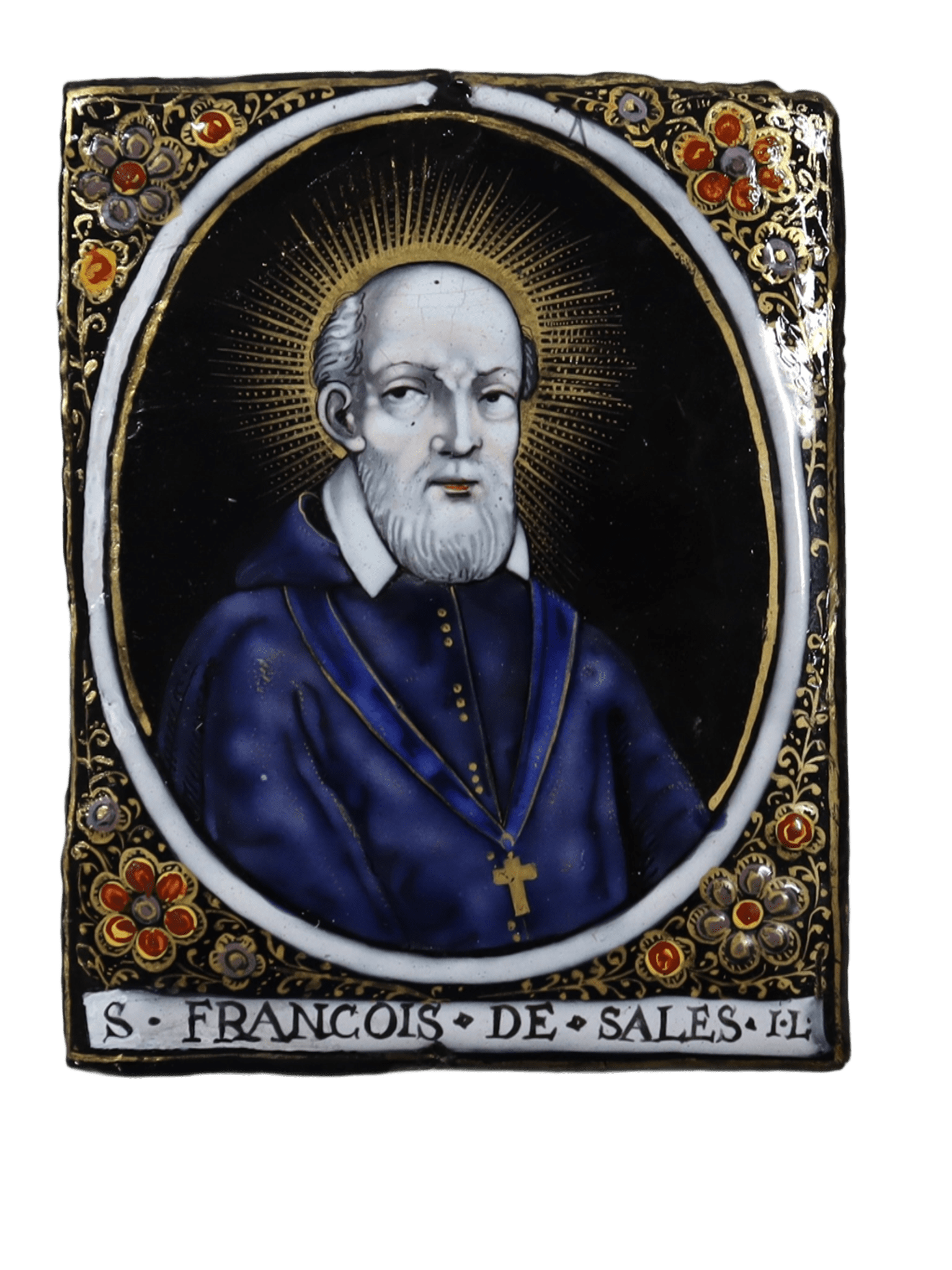 Atelier de Jacques II Laudin (1663-1729), Portrait de saint François de Sales, début du XVIIIe siècle, émail peint sur cuivre, après restauration. Département des Hauts-de-Seine, musée du Grand Siècle, inv.2025.7.742