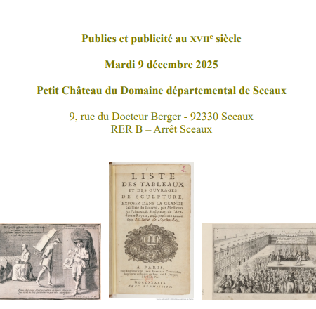 Mar. 09 déc. 2025Événement : journée d’études « Publics et publicité au XVIIe siècle » Lire l'article