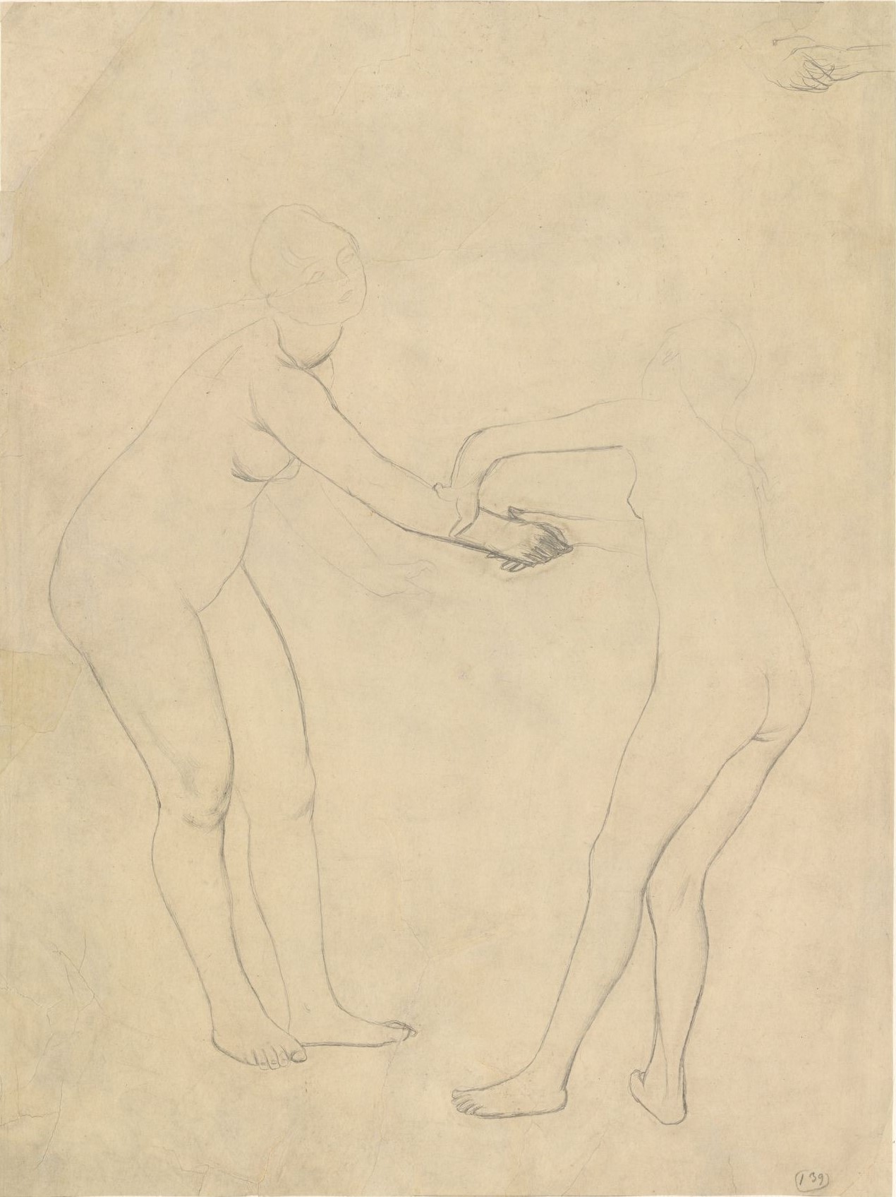 Deux baigneuses dessinées au crayon sur papier